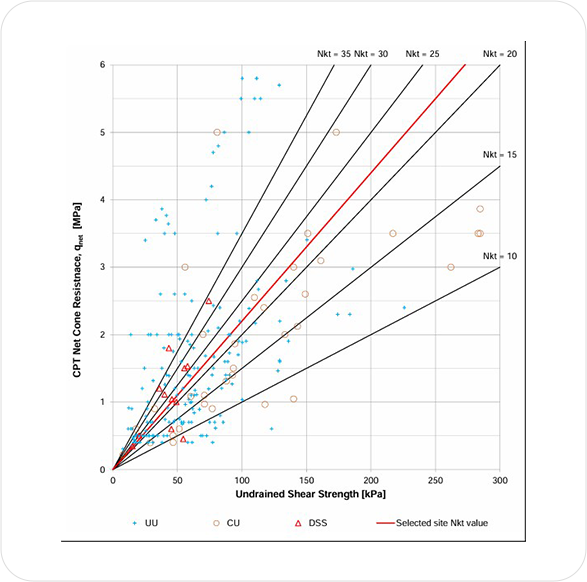 Undrained Shear Strength vs. Net Cone Resistance